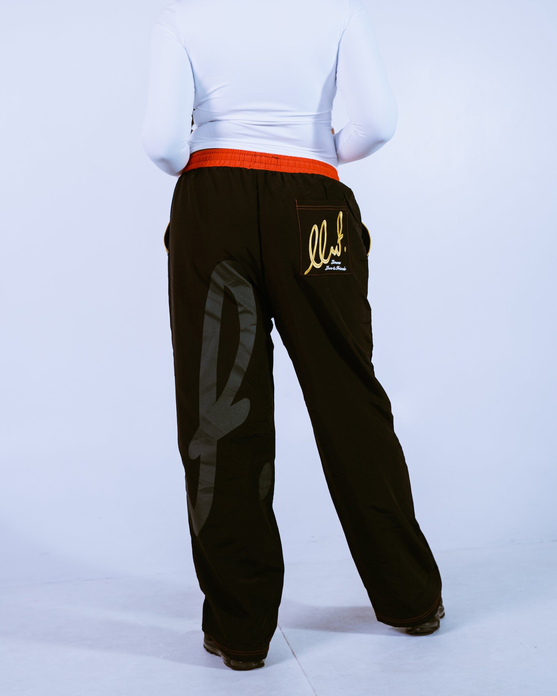 • 2-tone LL&F script logo wrap leg print